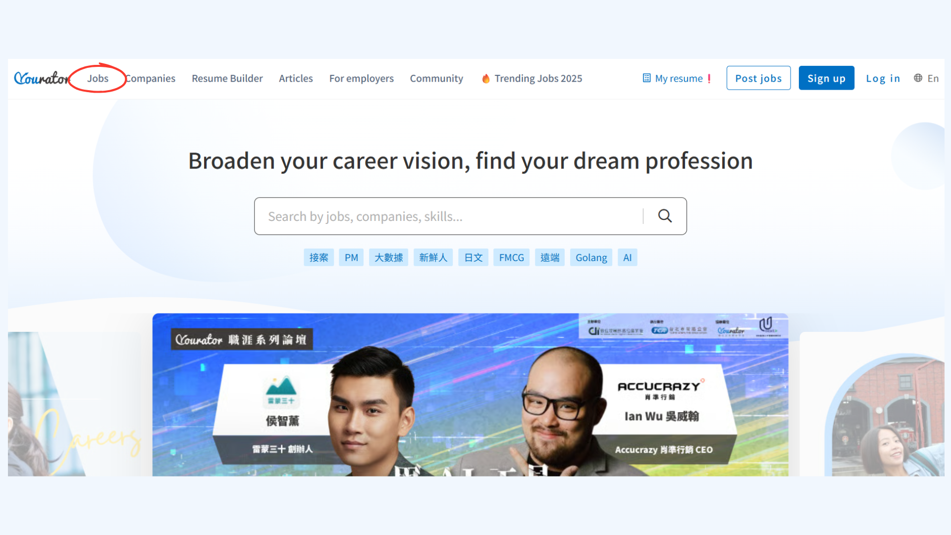 Yourator is a Taiwan-based job platform focused on startups, tech, and creative industries. It highlights company culture and is popular among fresh graduates and early-career professionals.