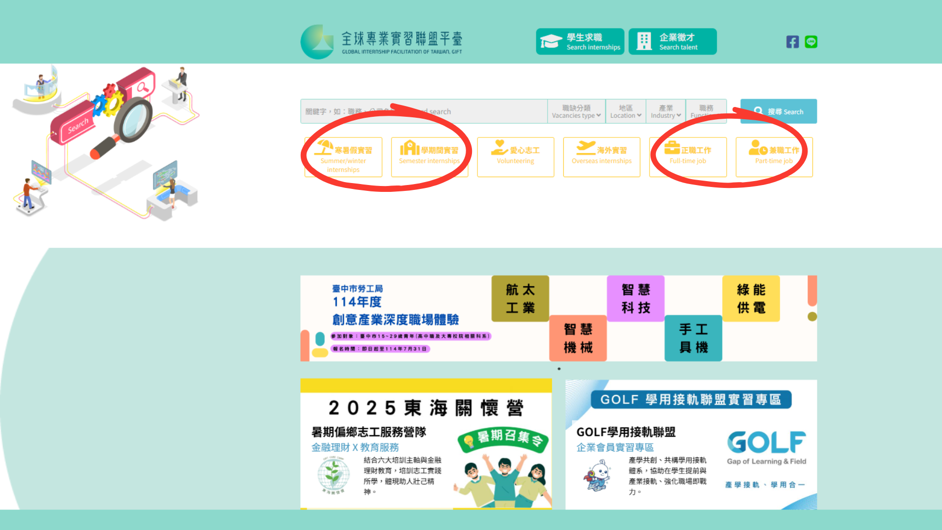 The Global Internship Facilitation of Taiwan (GIFT) is a government-supported platform that helps international students and young professionals find internship and job opportunities across Taiwan. Whether you’re looking for a summer or winter internship, a semester internship, full-time positions, or part-time jobs, GIFT connects you with leading companies, startups, and research institutes to jumpstart your career in Taiwan.